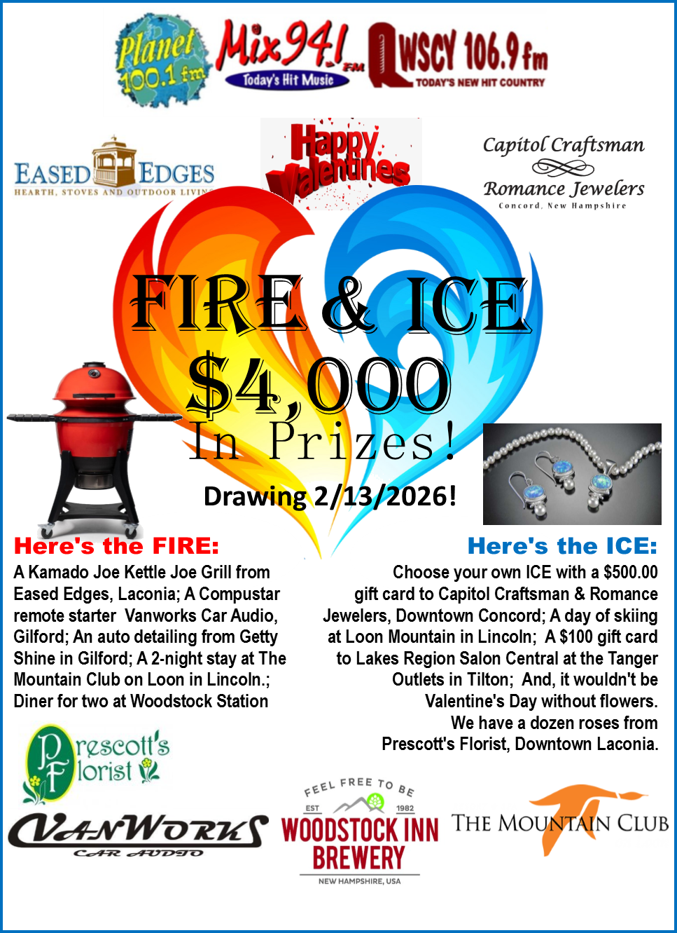 ~Win thousands of dollars in Fire & Ice Prizes. Be the 14th caller when you hear the ‘Fires of Love Mix Kiss’ and you’ll be in the drawing to win: