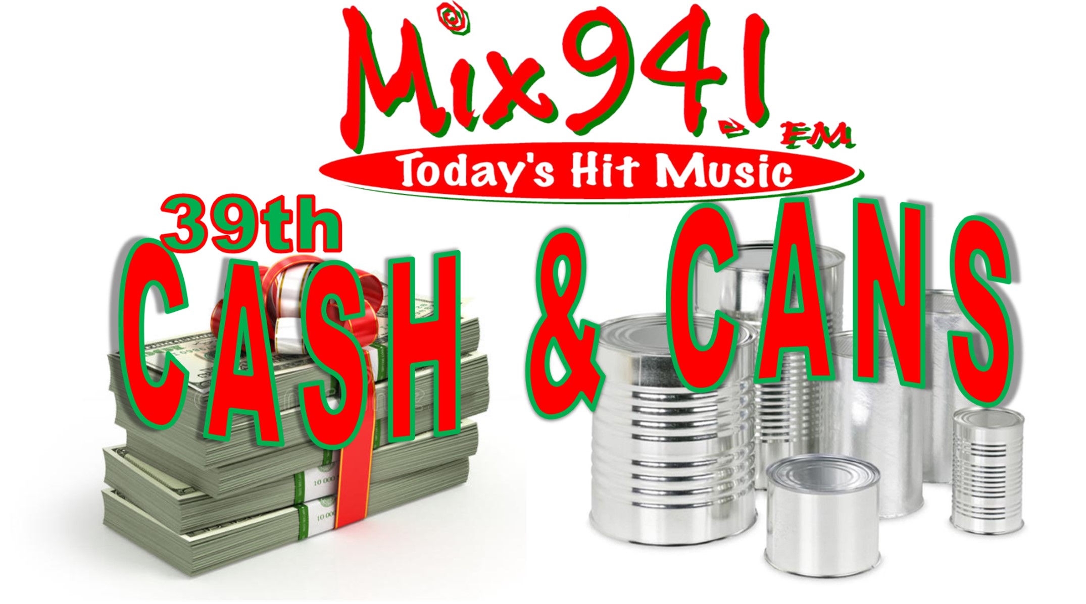 Our 39th annual Mix 94.1fm Cash & Cans Program is the week of December 7-12, 2025. Last year, Cash & Cans raised another record number of cash & cans, $77,112.54 and over 30,000 non-perishable food items. EVERY donation-every dollar, every canned good, every check, every box of cereal makes a huge difference to the organizations who benefit from YOUR generosity. EVERY donation helps our friends and neighbors right here in our central New Hampshire Community. Please know how appreciated YOU are. Our broadcast schedule for our 39th annual event will be out soon. THANK YOU FOR YOUR CONTINUED SUPPORT!